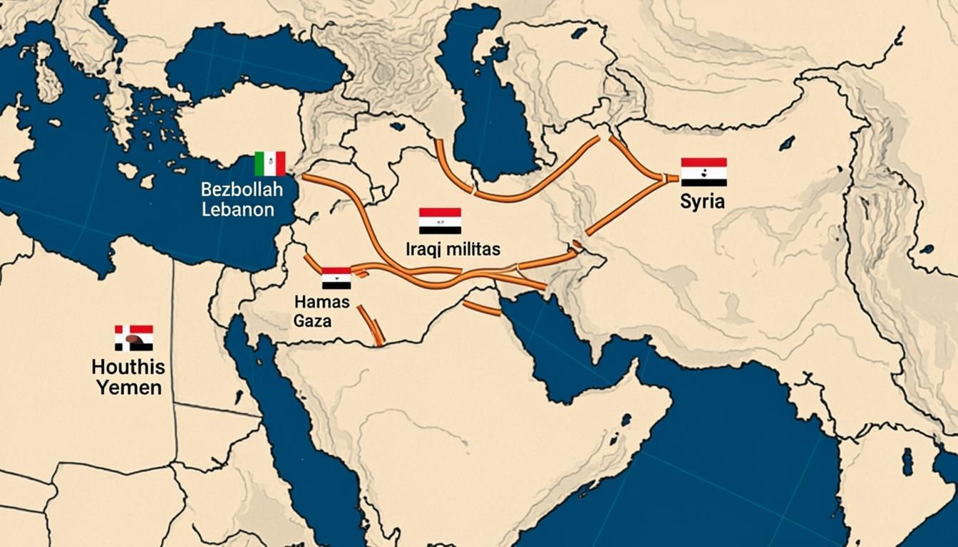 Iran proxy networks 2026: Complete analysis of Iran's Axis of Resistance including Hezbollah Lebanon, Hamas Gaza, Houthi Yemen, Iraqi militias, and their role in attacking Israel and US interests across Middle East.